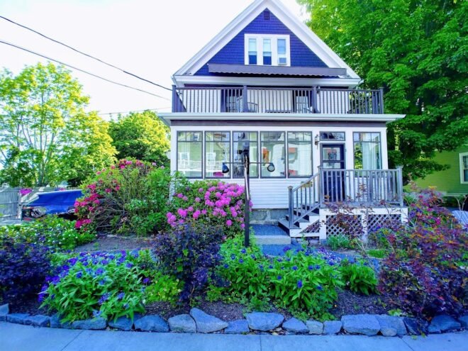 The Acacia House located in Bar Harbor, Maine sits just a few quiet blocks from the bustling town center, offering the perfect base for exploring both Bar Harbor and Acadia National Park. This charming B&B provides easy walking access to local shops, restaurants, and the famous sand bar, while being just a quick 6-minute drive to Acadia’s entrance. The property features several room options, including some with private balconies and spacious bathrooms, and offers convenient off-street parking for guests.