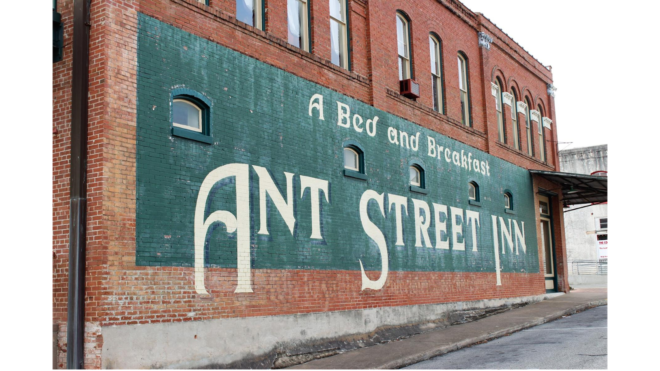The Ant Street Inn located in Brenham, Texas is a beautifully restored 1899 federal-style building situated in the heart of historic downtown. This charming bed and breakfast offers easy walking access to local restaurants, antique shops, boutiques, and the Unity Theater. The property features Victorian-style rooms, a beautiful garden perfect for events, and a ballroom that makes it an ideal venue for weddings and special occasions.