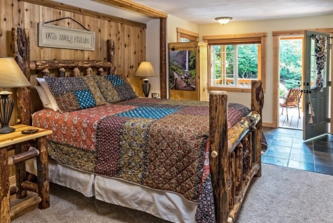 Guests consistently praise the spotless condition of the cabins. The rooms are beautifully appointed with comfortable, high beds and quality linens. The bathrooms are well-maintained and fully stocked with amenities, including luxurious bath salts. The overall atmosphere is described as cozy, charming, and romantic, with careful attention paid to every detail.