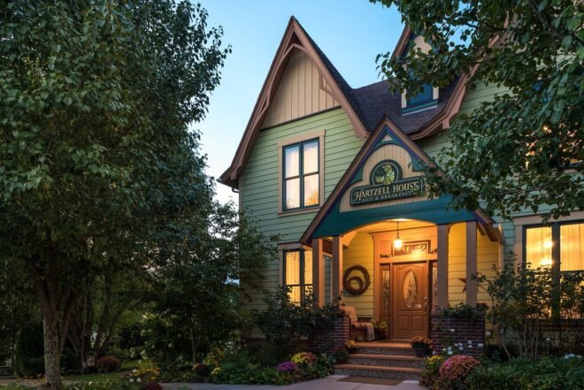 Hartzell House Bed and Breakfast located in Addison, Pennsylvania sits conveniently between Fallingwater and Gettysburg. This historic 1870s property offers easy access to Frank Lloyd Wright’s famous houses and Ohiopyle State Park. The inn is situated on a quiet street, perfect for peaceful getaways and morning walks.