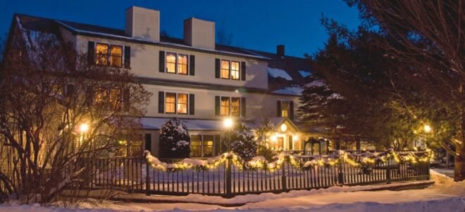 The Inn at Ellis River located in Jackson, New Hampshire is a charming historic property nestled in the White Mountains region of New England. This bed and breakfast sits alongside the Ellis River, offering stunning water views and a peaceful setting. The inn features a game room, pool, and a cozy fire pit area by the river. Located on a quiet street, it’s conveniently situated near restaurants, shopping in Conway, and various outdoor activities including hiking and skiing at Mount Washington.