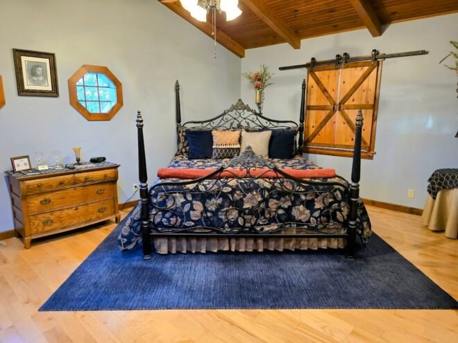 Mary Helen’s Bed & Breakfast located in Batesville, Indiana offers a serene countryside retreat just a few miles off I-74. This charming establishment features beautifully landscaped grounds with two ponds, complete with fountains and fish that guests can feed. The property includes multiple outdoor sitting areas, including a covered porch and multi-leveled deck, creating perfect spots for relaxation and nature enjoyment.