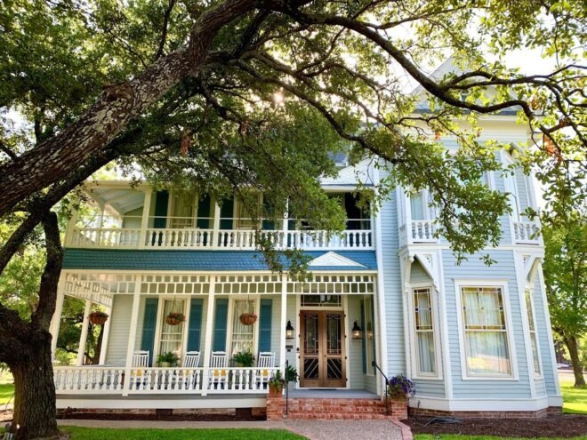The Milton Parker Estate Bed & Breakfast, located in Bryan, Texas, offers a charming historic retreat in a beautifully preserved estate. This elegant B&B sits within walking distance of downtown Bryan’s dining and entertainment options, making it an ideal base for exploring the area. The property is also conveniently located for Texas A&M University events, with a shuttle service available during football games. Visitors particularly appreciate the estate’s manicured grounds and magnificent front porch, perfect for relaxation.