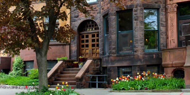 The Morgan State House Inn located in Albany, New York is a charming gilded age mansion situated across from Washington Park. This historic property offers easy access to downtown Albany, with the Capitol building just a 10-15 minute walk away. The location is ideal for exploring local restaurants on Lark Street and enjoying the adjacent park. This bed and breakfast features beautiful architectural details including stunning woodwork throughout and Japanese influences from the 19th century.