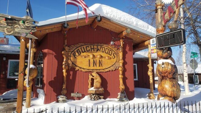 The Rough Woods Inn, located in Nenana, Alaska, sits conveniently between Fairbanks and Denali National Park, making it an ideal stopover for travelers exploring the Alaskan interior. This charming establishment offers both lodging and cafe services, providing a welcoming rest stop for those journeying through the region. Visitors can enjoy the stunning natural surroundings and potentially catch glimpses of the Northern Lights from this location.