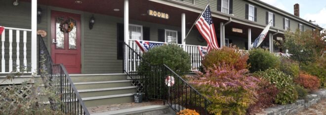 The Stagecoach House Inn, located in Wyoming, Rhode Island, is a historical gem situated along a peaceful river. This charming bed and breakfast is conveniently located off I-95, about 25 minutes from Foxwoods Casino and a short drive from URI campus and Rhode Island’s beaches. The property features a beautiful riverside setting with opportunities for rainbow trout fishing and scenic views from private balconies.