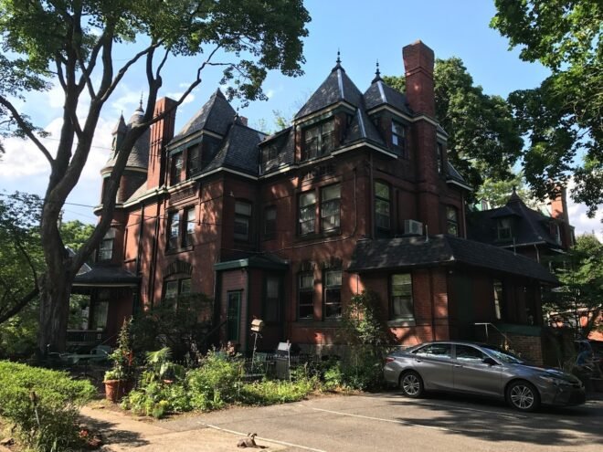 The Gables Bed and Breakfast located in Philadelphia, Pennsylvania is a beautifully restored Victorian mansion situated in a quiet part of West Philadelphia near the universities. This historic home offers easy access to downtown via the SEPTA trolley, which stops right outside and reaches the city center in about 15 minutes. The property is conveniently located just one block from Clark Park, known for its Saturday farmers market, and provides free off-street parking for guests.