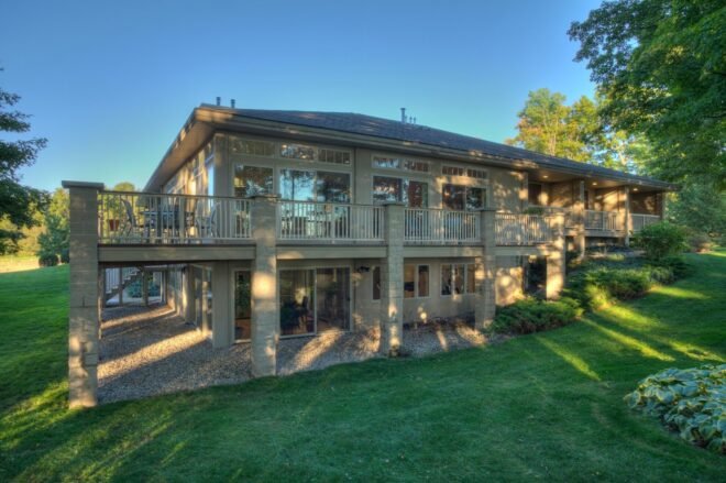 The Inn at Chateau Grand Traverse located in Traverse City, Michigan offers a picturesque retreat on the Old Mission Peninsula, surrounded by stunning views of Grand Traverse Bay and rolling vineyards. This bed and breakfast sits approximately 1,000 feet behind their winery’s tasting room, providing easy access to wine tastings while maintaining a peaceful setting. Guests can explore numerous nearby wineries, restaurants, and attractions in downtown Traverse City, just 15 minutes away. The property features amenities including a workout facility, sauna, laundry facilities, and welcoming common areas with books and games.