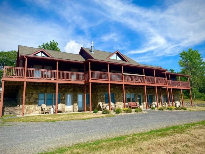 The Lodge at Grist Iron Brewing Co. located in Burdett, New York offers a prime location in the heart of the Finger Lakes region. This charming property sits overlooking Seneca Lake, perfectly positioned near popular attractions including Watkins Glen State Park, numerous wineries like Hazlitt and Atwater, and is just a short drive from Ithaca. The property features a brewery on-site, a dog park, outdoor fire pit, and “Beer Mountain” for disc golf, making it an ideal base for exploring the area’s diverse attractions.